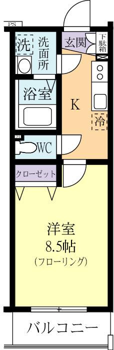 | 間取り/詳細 | 1K/洋室 8.5畳、K 1.5畳 | ||